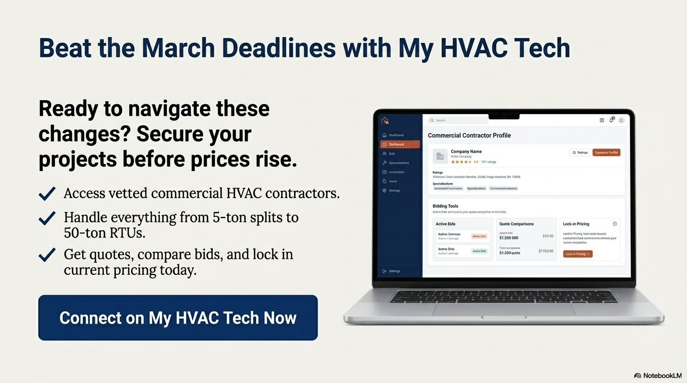 Ready to navigate these changes? Find qualified commercial HVAC contractors on My HVAC Tech today—your marketplace for vetted pros handling everything from 5-ton splits to 50-ton RTUs. Connect now to get quotes, compare bids, and secure your projects before prices rise.